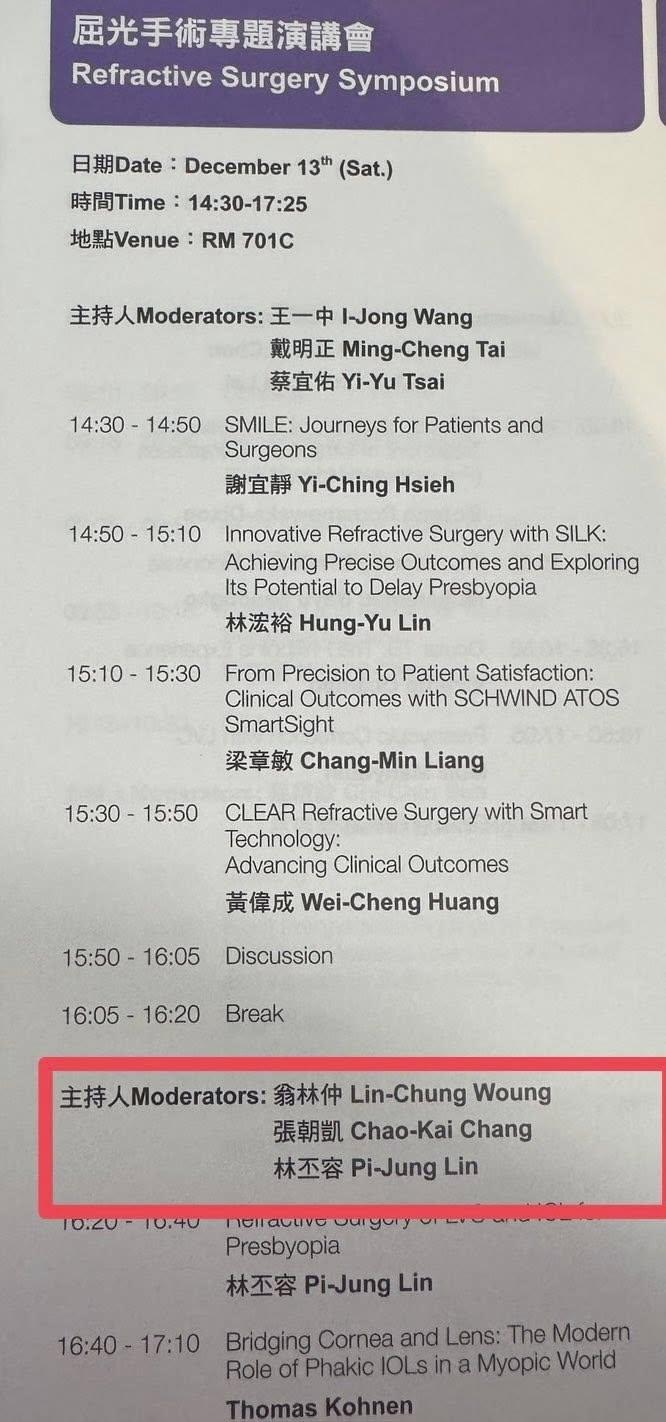 2025年12月14日-2025眼科醫學會年會圓滿結束,很榮幸擔任了六場學術活動的主持,見證了多位年輕醫師準備演講的投入和風采。