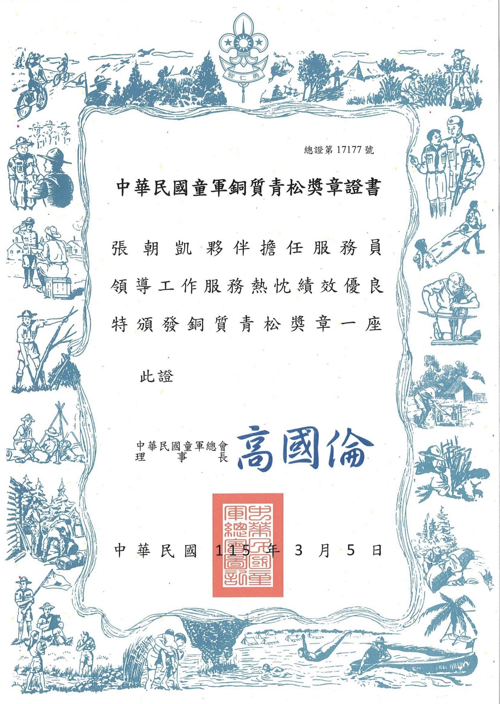 民國115年3月-表揚獎章-擔任中華民國童軍總會服務員領導工作