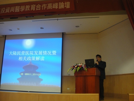 2010年12月19日第一屆海峽兩岸醫療服務投資與醫學教育合作高峰論壇在台北台大國際會議中心舉行