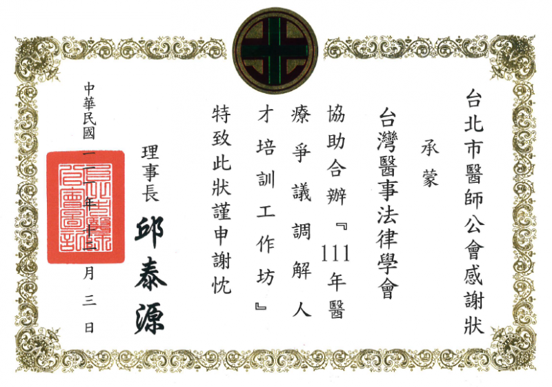 2022年12月3日-台灣醫事法律學會協助合辦「111年醫療爭議調解人才培訓工作坊」