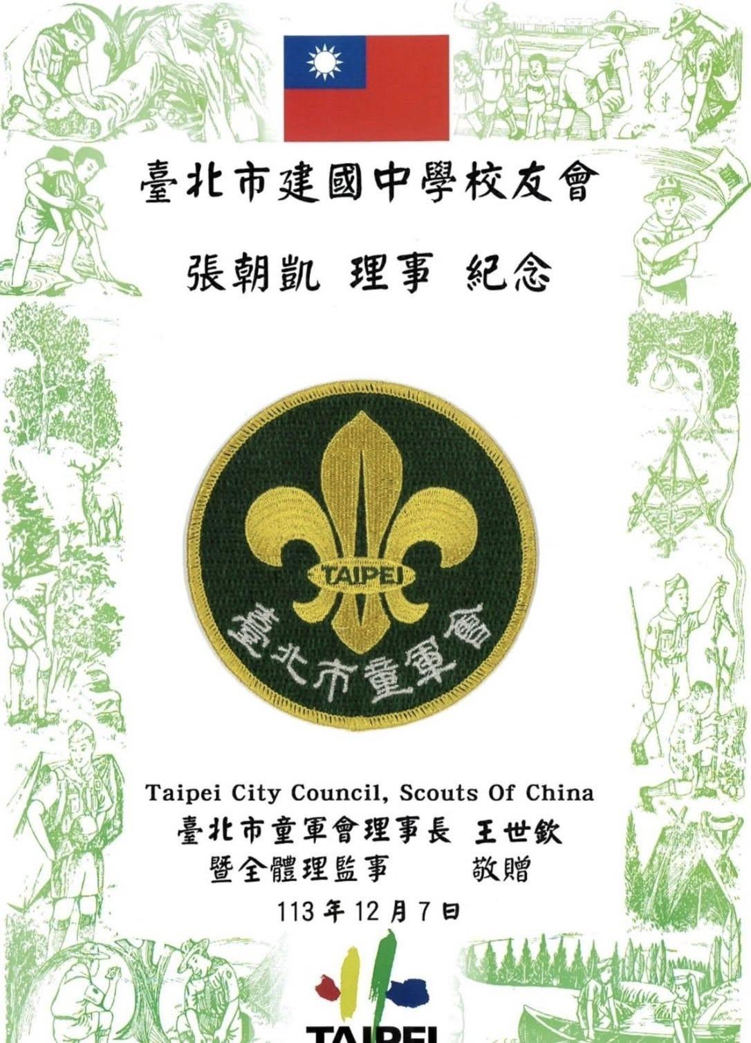 弟也很榮幸於近期獲頒「童軍團青松獎章」/建中行義童軍團(CKVScout)是建國中學的服務性社團,致力於推動建中學生及校友「團隊合作技能及社區服務工作」,長期公益形象獲得好評。